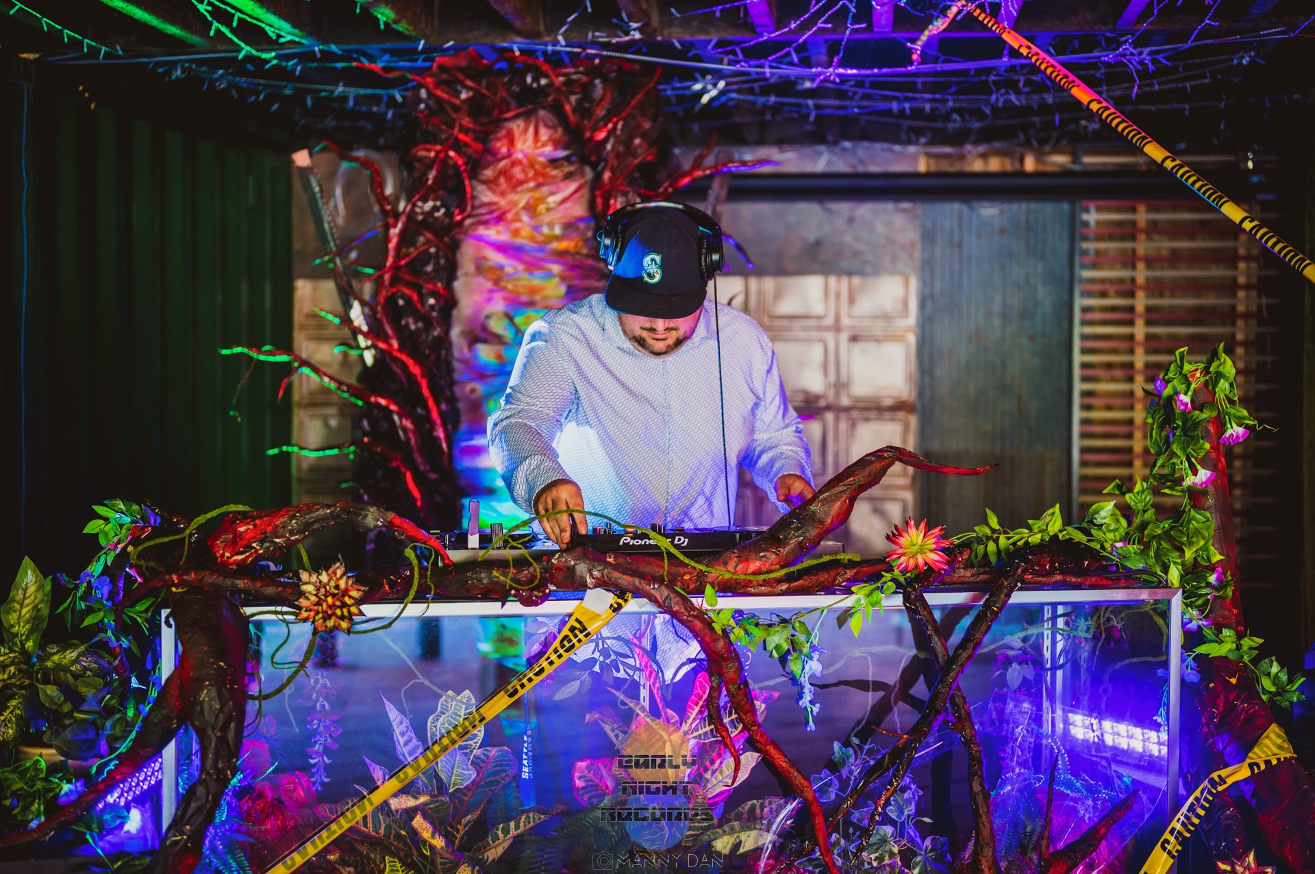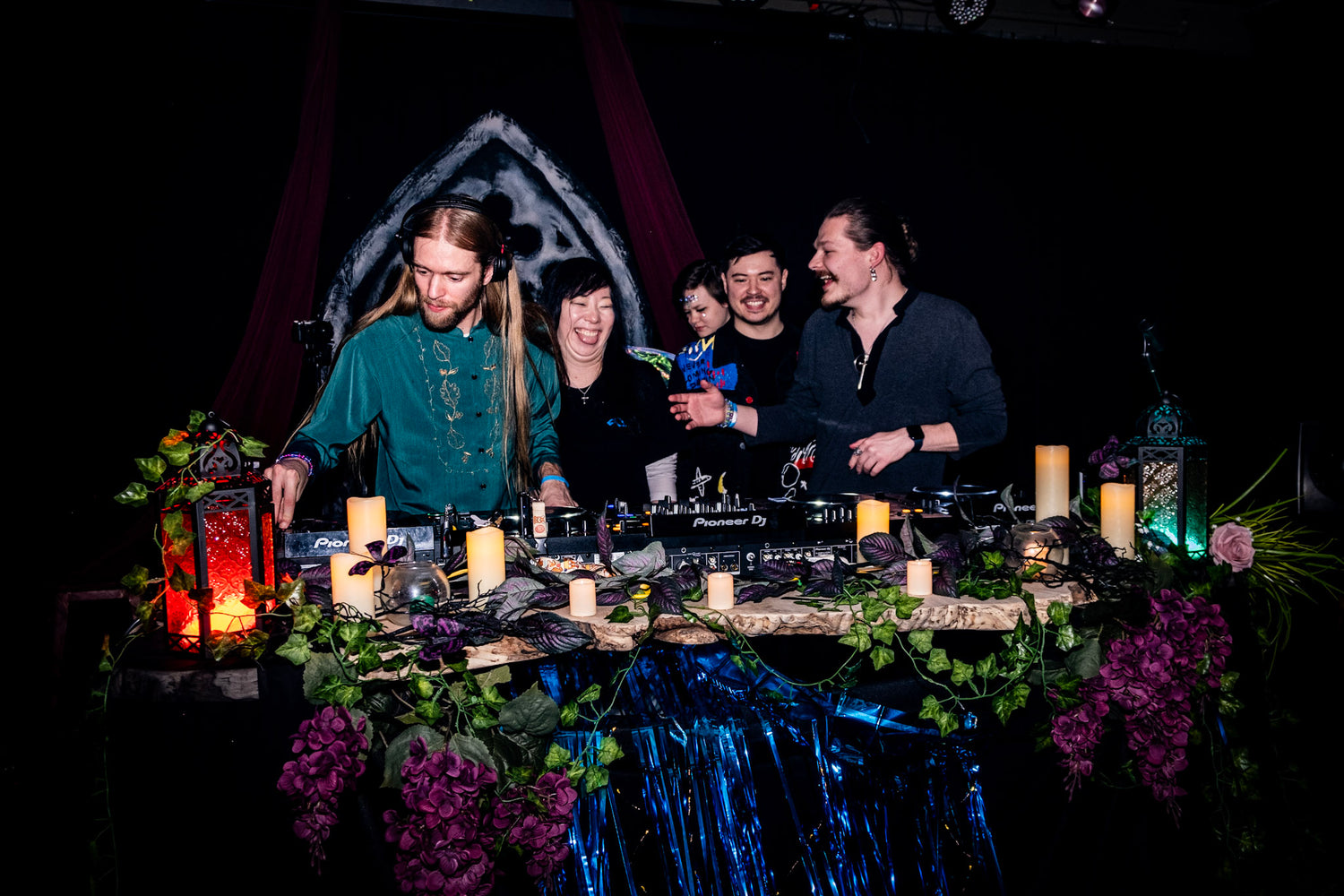 I also embellished the DJ booth with faux foliage and lanterns provided by the World Tree Records.